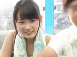 無防備な姿で業者を誘惑する美少女